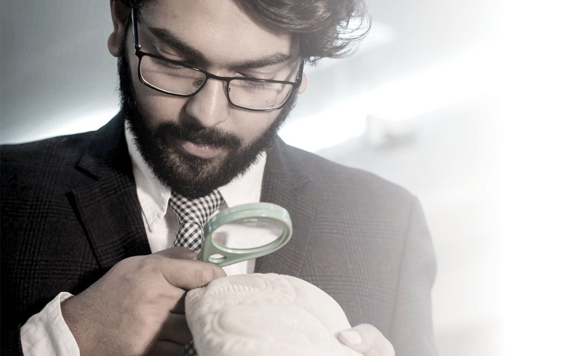 Textle expert studying fabric microns & thread count.