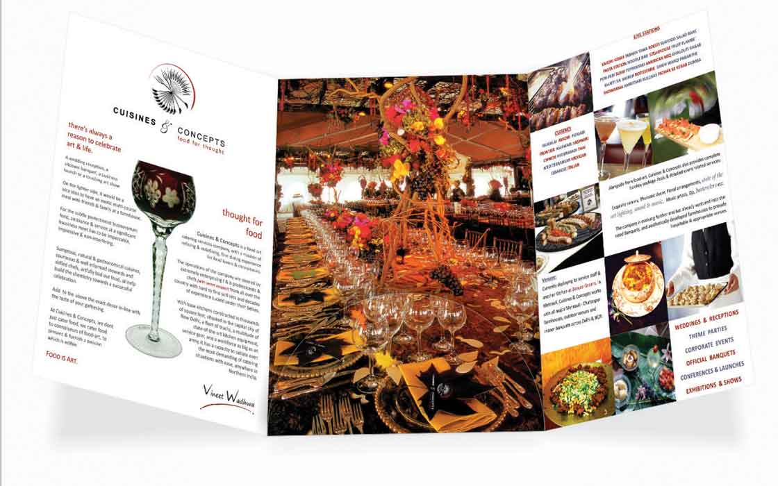'Food is Art' themed corporate banqueting brochure informing prospective clients about the quality and kind of services rendered.