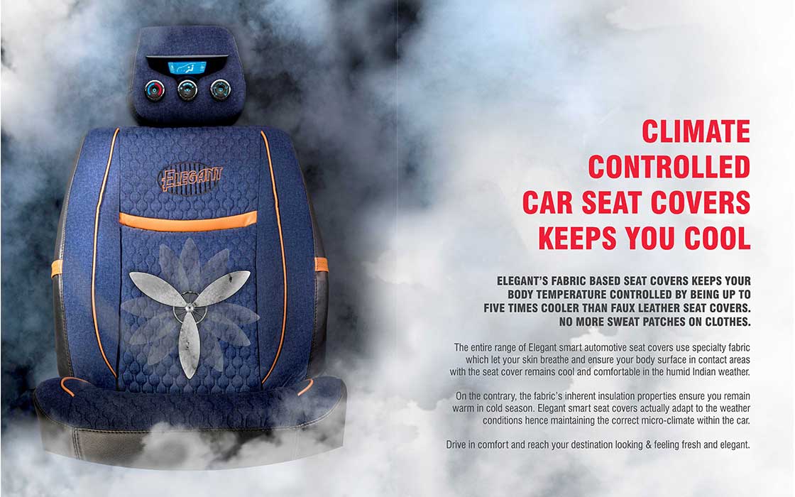 Creative depicting the specialty fabric seats designed for Indian weather which are temperature controlled and breathable.
