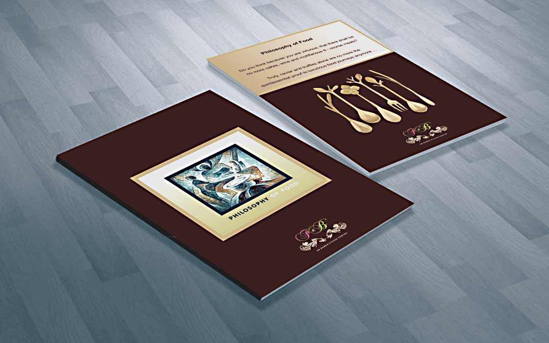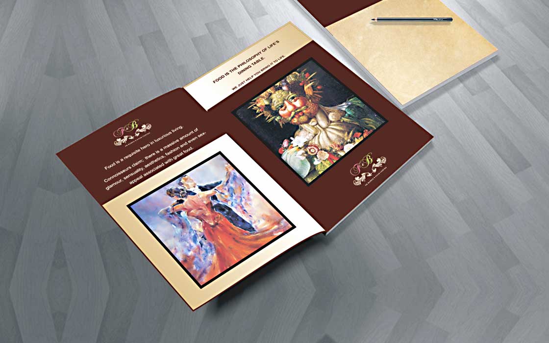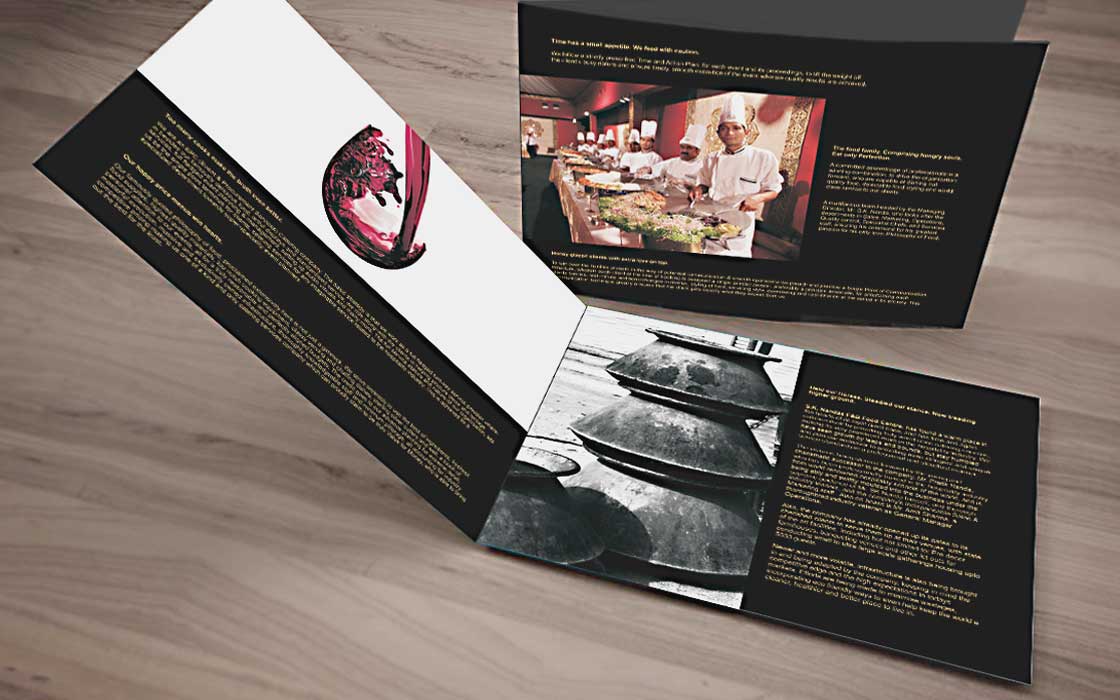 Corporate brochure re-instating the USP of F&B: Impeccable service, artistic presentation & generous hospitality.